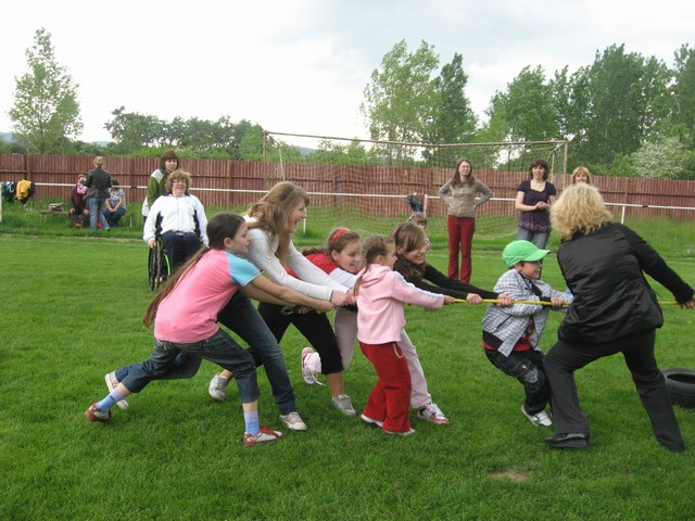 boli pripravené rôzne súťaže a hry - preťahovanie lanom, štafetové behy